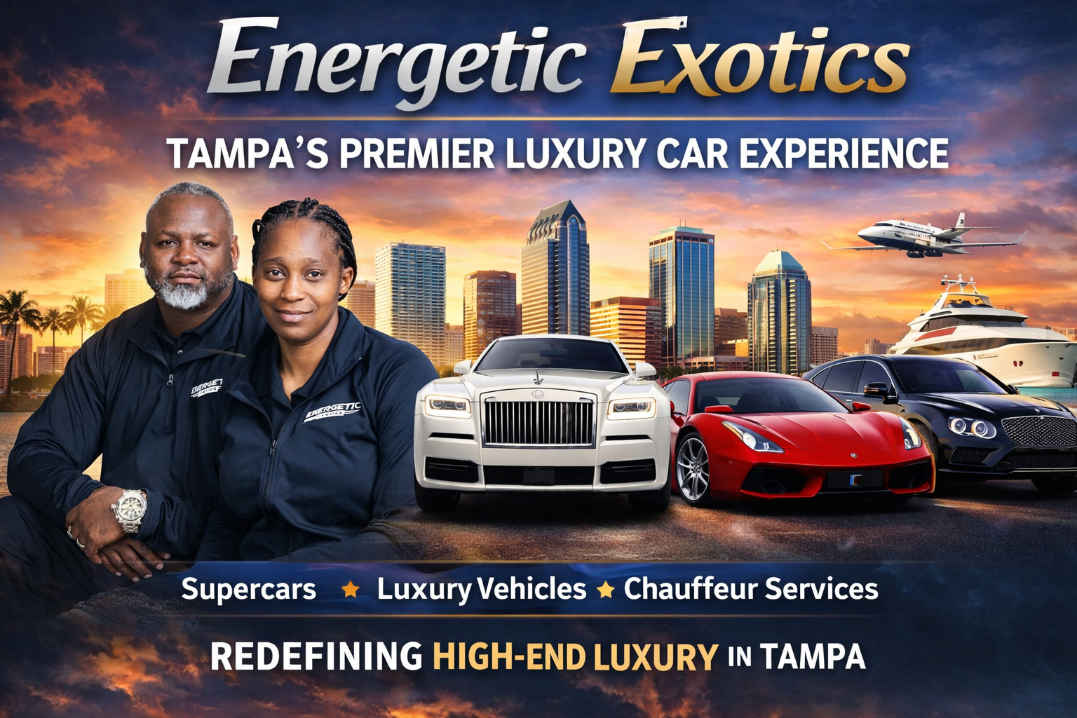 Founded by Marlon Wentworth and Jessica Wentworth, Energetic Exotics was built on a simple but powerful strategy: bring Miami-level luxury energy into the Tampa market—and execute it better. Their backgrounds—logistics and operational systems on one side, structured client service and precision on the other—created a foundation most competitors simply don’t have. The result? A company engineered not just to rent cars—but to deliver experiences.